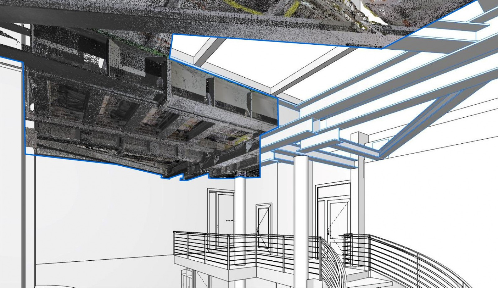 Im 3D-Laserscanning-Verfahren können die sichtbaren Oberflächen eines Gebäudes mit sämtlichen Details als Punktwolke digitalisiert werden. Im virtuellen Raum werden nunmehr sowohl in der Scan-Punktwolke als auch im 3D-Gebäudemodell an identischer Stelle Schnitte erzeugt, woraus in der weiteren Bearbeitung eine Gesamtzeichnung entsteht. Die geplante Konstruktion kann somit exakt mit den bestehenden Bauteilen synchronisiert werden.