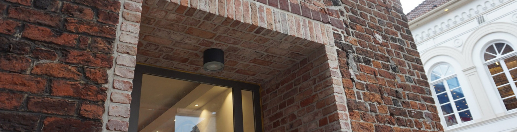 Im Rahmen der Baumaßnahme wurde das Erdgeschoss barrierefrei für Menschen mit Behinderungen gestaltet. Für eine stufen- und schwellenlose Erschließung wurde aus einem vorhandenen Fenster ein neuer Nebeneingang geschaffen. Die für die neue Türleibung erforderlichen Verblendsteine wurden hierfür eigens recherchiert und sorgfältig auf den Bestand abgestimmt.