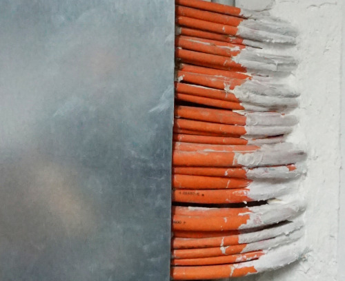 Der Fachbauleiter Brandschutz koordinierte die Schnittstellen der einzelnen Gewerke in brandschutztechnischen Fragen und stimmte die Anforderungen aus verschiedenen Prüfzeugnissen aufeinander ab. So musste beispielsweise vor der Montage einer feuerbeständigen Rohrleitungsabschottung einer Heizungsleitung eine entsprechende zulassungskonforme Leibungsverkleidung im Trockenbau hergestellt werden. Werden mehrere Leitungen der Gebäudetechnik durch eine gemeinsame Wandöffnung geführt, müssen in der Regel die Mindestabstände der Abschottungen beachtet und geklärt werden.