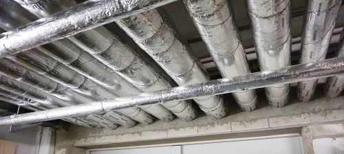 Der Fachbauleiter Brandschutz koordinierte die Schnittstellen der einzelnen Gewerke in brandschutztechnischen Fragen und stimmte die Anforderungen aus verschiedenen Prüfzeugnissen aufeinander ab. So musste beispielsweise vor der Montage einer feuerbeständigen Rohrleitungsabschottung einer Heizungsleitung eine entsprechende zulassungskonforme Leibungsverkleidung im Trockenbau hergestellt werden. Werden mehrere Leitungen der Gebäudetechnik durch eine gemeinsame Wandöffnung geführt, müssen in der Regel die Mindestabstände der Abschottungen beachtet und geklärt werden.